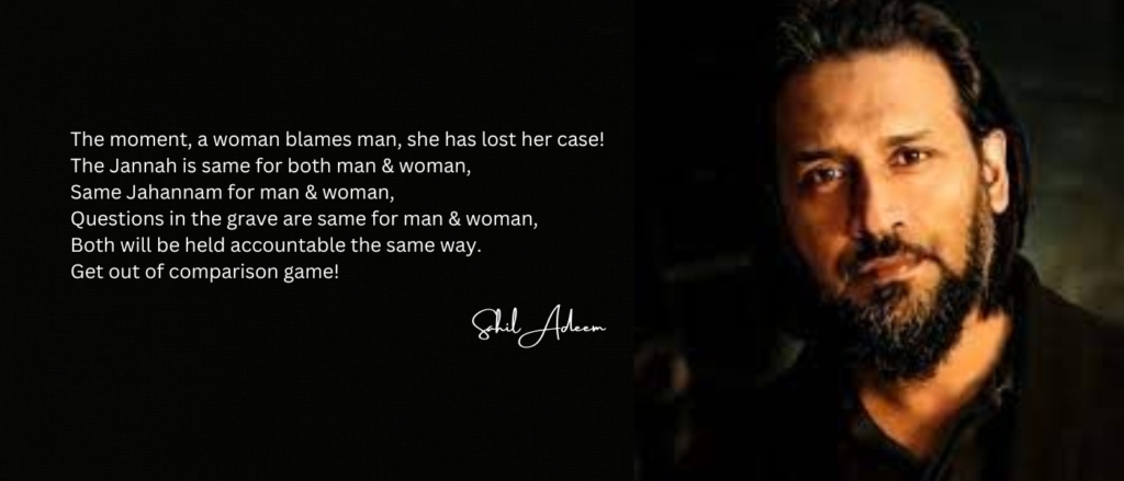 The moment, a woman blames man, she has lost her case! The Jannah is same for both man & woman. Same Jahannam is there for man & woman. Questions in the grave are same for man & woman. Both will be held accountable the same way. Get out of comparison game!
