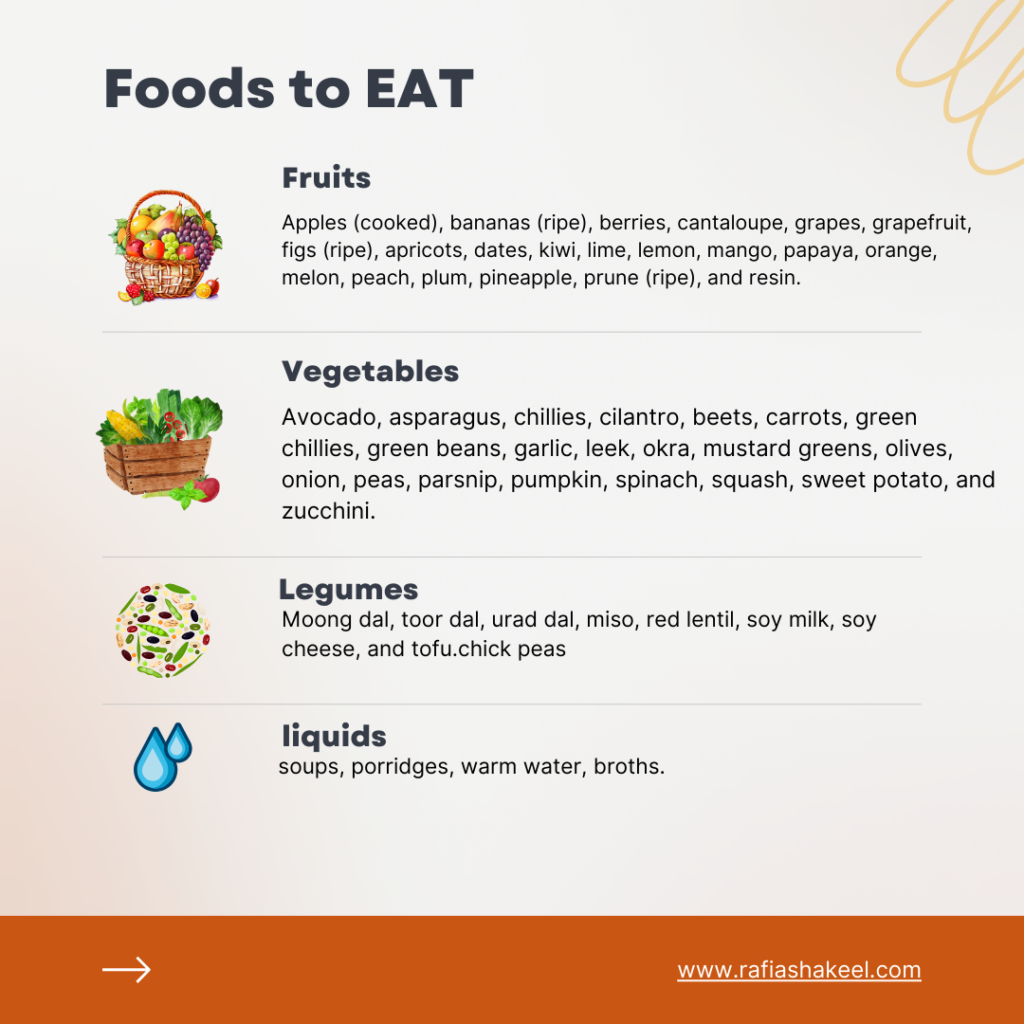 • Consumption of papaya and pomegranate fruits daily is an integral part of the vata diet. It will relieve you of the problem of constipation.