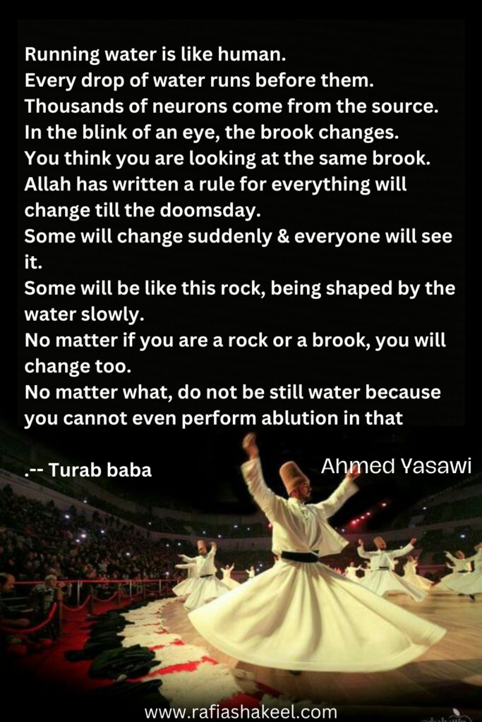 No matter what, do not be still water because you cannot even perform ablution in that.– Turab baba