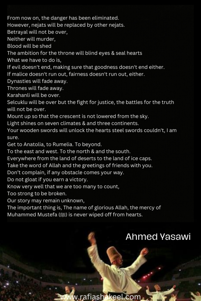 Haji Ahmed Yasawi was a famous Turkish poet and Sufi mystic who lived in the 12th century. His poetry was all about deep spiritual ideas from Sufism, which is a way of thinking about life and God. Yasawi’s poems talked about love, faithfulness, and finding spiritual truth. His teachings, based on Anatolian culture, still inspire people looking for wisdom.