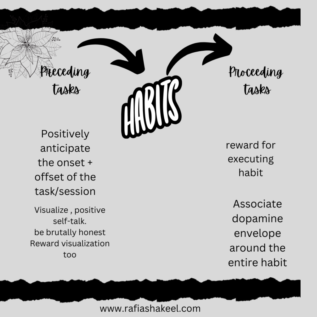 [Pre-habit activity --> actual habit --> post-habit activity]